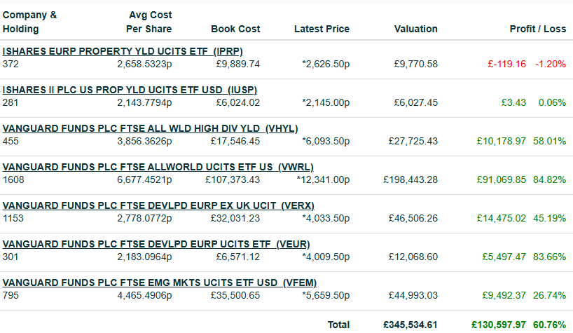 Viso investuota 60 361,74£, vertė 87 818.53£ (+27 456.79 £ +72.17% metinių, +45.49% paprastų). Investavimo pradžia 2021-03-04.