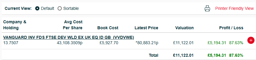 Viso investuota 43 445£, vertė 53 645.19£ (+10 200.19£, +23.48%). ISA investavimo pradžia 2024-04-24. SIPP atidaryta 2024-07-25.